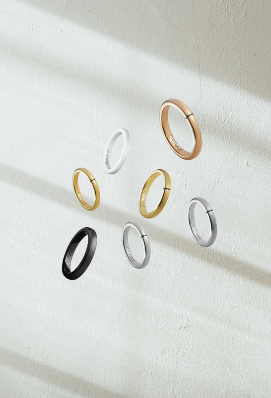 Scegli il set di misurazione miPAGO che comprende un kit con varie sagome di misure differenti e un coupon che ti permetterà di acquistare l’anello che preferisci nella misura ideale una volta che l’avrai individuata.